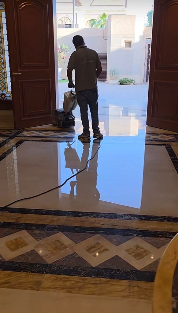 نوفر خدمة تلميع الرخام بالكريستال وتلميع الرخام بالكرستال لإضفاء لمعان قوي وحماية إضافية للرخام. هذه الطريقة مثالية للمنازل والفنادق والمداخل وتساعد في إطالة عمر الرخام والحفاظ على بريقه.